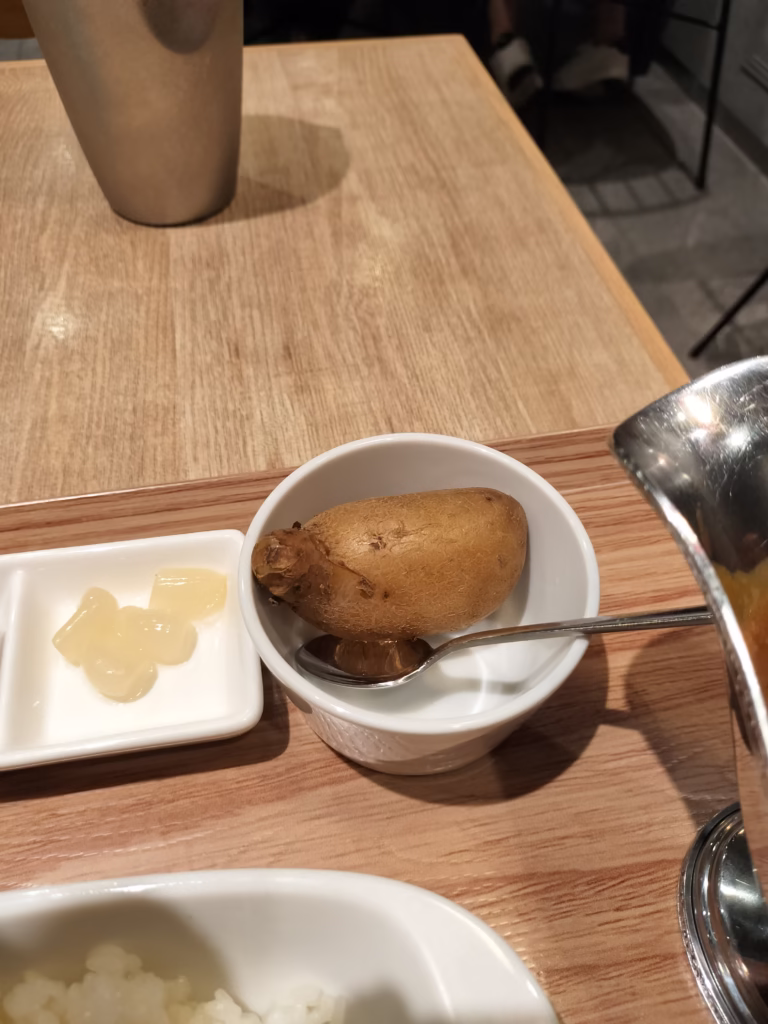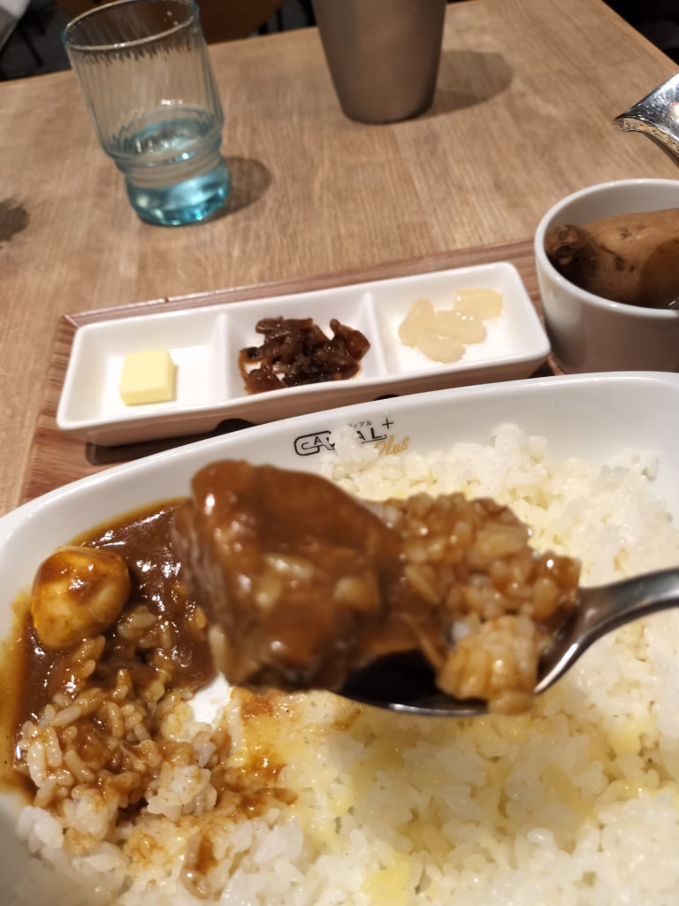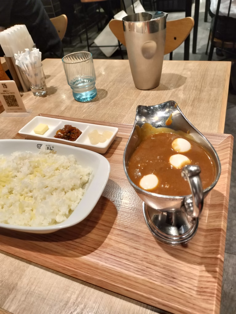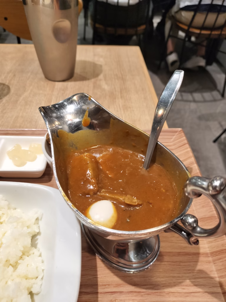 In less than five minutes, the arrangement was laid out before me. The curry, dark and potent in its silver pot; the rice, a pristine canvas already dotted with cheese. Yes, this is how European-style curry should be. A silent nod of approval. The separation isn’t just for show—it grants you, the diner, complete control over the experience.