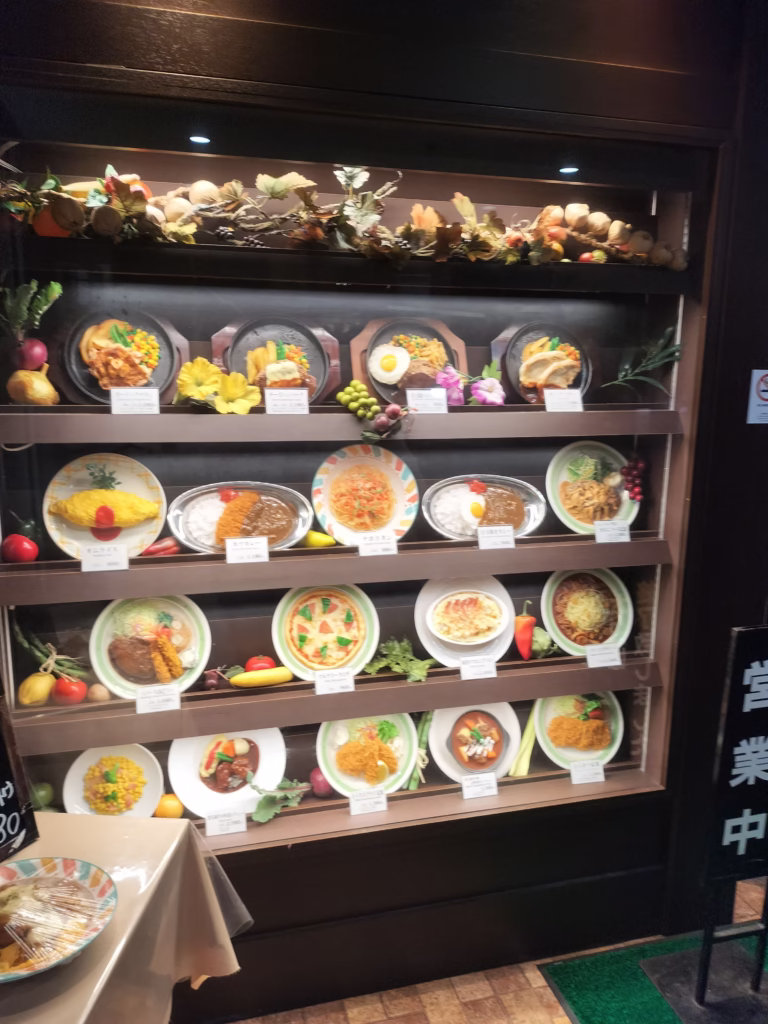 First Impression Analysis: The entrance immediately establishes authenticity through stunning display of hyper-realistic food samples (sampuru)—a classic hallmark of traditional Japanese diners that serves both aesthetic and functional purposes for international visitors.