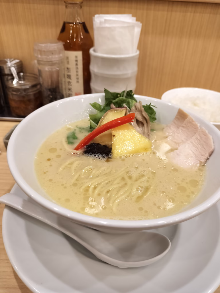 Before analyzing Kagari’s execution, one must understand the foundation. Tori paitan (鶏白湯) represents the chicken-based evolution of ramen culture—a rich, creamy, velvety soup created through extended simmering of chicken bones. Unlike the more common tonkotsu (pork bone) or shoyu (soy sauce) bases, tori paitan offers profound umami depth while maintaining elegant refinement.
