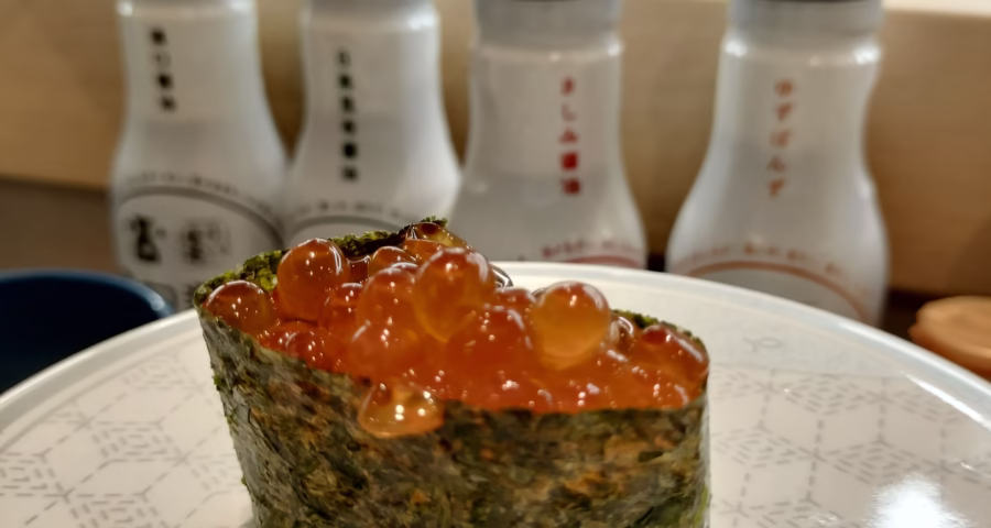 Why It’s Essential: This gunkan-maki represents the creativity unique to kaiten-zushi culture. The combination of mixed seafood, wasabi-soy sauce, and mayonnaise creates a flavor profile impossible to find in traditional sushi establishments.